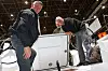 SMUGTITT: Arnt Ottesen ( t.h) sammen med Jeanneau-forhandler Oda Lotte Heitmann og kameraten Terje Pederen i Düsseldorf. Fotos: Linn Krogh Hansen.