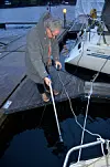 Jeg monterte et nytt system som skal holde skroget rent uten gift før sommeren. Etter sommeren kunne vi se at systemet hadde en effekt, men likevel var langt fra et godt alternativ til bunnstoff. Heller ikke Odd Rolfsen fra Algae-Free var fornøyd.