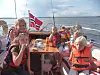 På bildet ser vi fra venstre: Hedda(med pølse), Inda, Tuva, Frisk, Pia og Celine. Emilie, og Malin var også med, men litt opptatt med å trimme seilene for øyeblikket. Vi i seilredaksjonen gleder oss stort til åfå seilbamsen vår hjem og høre om alle opplevelse hans.