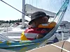Frisk har funnet favorittbåten sin på tampen av sommerferien. Seilbåt med hengekøye.