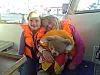 Første dagene etter at det nye mannskapet kom ombord i Lysekil, både regnet det og blåste masse. Men Frisk og barna var like blid. Det gjelder bare å ha god fantasi, så er det masse moro man kan finne på ombord på en seilbåt. Man kan for eksempel krype bak i akterkabienen og se på film, eller man kan kle seg godt og sitte på dekk og se på alt livet i havnen.