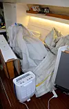Forrige helg tok jeg av seilene på båten. Storseilet hadde stått på bommen med en uke med regn, og var ganske fuktig. Jeg la hele seilet ned i salongen, og skrudde på luftavfukteren. Den er av merket Meaco fungerer på en annen måte en vanlige lufttørkere og fungerer ned til null grader. I løpet av ett døgn var storseilet nesten helt tørt. Jeg snudde litt på det, og andre døgn var det knusk tørt.