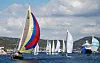 Stort bilde: Spinnakerstart ut av Bodø havn. Foto : Ola Torstensen.