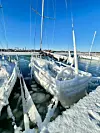 NEDISET: Ifølge minbaad.dks opplysninger har eieren av denne båt, Mikkel Lange, fjernet 1,2 tonn is fra båten. – Den har det fint nå, sier han.