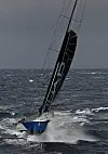 Det blåser mellom 40 og 50 knops vind, eller full storm i Bass-stredet. I går ettermidddag, lokal tid var to mann på dekk for å reve seile, da «YuuZoo» seilte inn i det tøffe været.