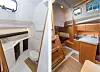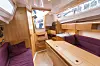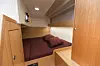 Båten har forpigg med dør. Benkene i salongen er ikke full lengde, men lange nok for barn. Under cockpiten er det en bra dobbeltkøye på tverrs. Det er faktisk også overraskende bra med stueplass i cockpiten også. Byssa er enkel, men har ovn og kjøleboks. Badet er også overraskende stort.