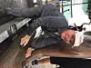 HEMMELIG VÅPEN: Til tross for at det ikke er målbart, betyr det mye for Claus Landmark å få smurt lagets «hemmelige» våpen i bunnen av båten. Det virker, om ikke annet enn psykisk.