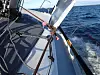 Det er plassert tre vinsjer på hyttetaket, og her justeres fokka, en løsning jeg liker. Fokkas skjøtevinkel justeres med et flytende skjøtepunkt. Det sparer vekt, og gir fleksibilitet. Utfordringen er å finne tilbake til riktig trim etter omjusteringer.