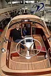 Skroget er bygget i glassfiber, men det er det umulig å se eller lukte. Det er mahogny og lakk som båten oser som en deilig parfyme. Det er også bare kun skroget som er av moderne materiale. Dekk og overbygg, samt hele innredningen er laget av mahogany og teak. Hvor enn du ser, så er det lakkerte treflater. Det er som å være om bord i en ekte trebåt. Utvendig er det brukt to-komponent lakk som skal holde vedlikeholdet til et minimum.