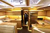 Båten har en bred hekk med stor badeplattform og jollegarasje. Cockpiten er nokså tradisjonell for denne typen båter med to ratt med pidestaller og langsgående benker og ekstra sitteplass under sprayhooden. Løygangen går foran luka ned, og båten er utstyrt med selvslående fokk. Svartlakkert mast er populært tilbud, forteller salgssjef Georges Tchoumak til Seilas.