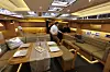 Innredningen byr også på noen smarte løsninger. Byssa er trukket frem midtskips foran salongen, og dette virker lurt under forutsetning av at ikke bevegelsene blir for store i sjøen. På babord side er stekeovn og vask og på styrbord side kjøleskap og fryser. Løsningen byr på en stor og likevel kompakt bysse med mye støtte for kokken når maten skal lages i rom sjø.