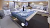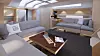 Salongen og byssa er også endret. Valget er å ha byssa fremme foran salongen, som er en sosial løsning. Dette er en løsning egnet for eiere som liker å delta i matlagingen. Alternativet er å ha byssa plassert på babord siden bak, der gjeste lugaren gjerne er, som er blir en mer skjult løsning, greit om kokken er innleid.