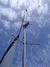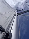 Vi hadde seilt med 3dje revet satt siden onsdag ettermiddag. Da vi hørte lyden ved midnatt seilte vi i tillegg med en godt revet genoa. Det blåste 12m/s og vi hadde vinden inn litt forenom tvers. At riggen ble stående er et under...