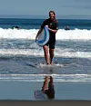 De mest erfarne surferne løper hoppende over de store steinene ned til vannet. Her stopper de opp et lite øyeblikk for å studere bølgene før de kaster seg ut i det frådende hvite skummet. Da er det om å gjøre å padle som en helt for å rekke langt nok ut innen neste bølgesett kommer. Ikke noe for en nybegynner med andre ord. Det er fasinerende å studere de proffe, selv om det til tider ser skummelt ut.