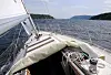 I det vi hadde kommet oss på land kom første regnbyge, som varslet et vær omslag. Søndag morgen var det bare 13 grader i båten, og kald vind fra nord blåste ned i båten. Vi la kursen rundt Håøya før vi satte nordover. I Sandspollen var det fullt med båter. Det var det også på øyene på vestsiden av Håøya. Vinden kom og gikk, og det ble noen kraftige rosser fra nord, før vinden døde helt og solen stekte.