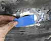 MASKERE: Også fra oversiden av hullet ble det maskert, før tettingen fra undersiden.