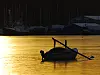 Denne Folkebåten har ligget slik i snart to uker, og snart blir den frosset inn.
