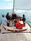 Klassiske linjer, men moderne rigg og undervannskrog gir suverene seilegenskaper. Trekonstruksjon gir et lett og sterk skrog, men alt har sin pris.