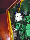 EKSTRA DYNAMO: Den hvite ekstradynamoen er på plass. På baksiden er alle kablene fra regulatoren montert. Hvit, blå og brun via egen klips, rød via sikring og til pluss på dynamoen, brun via egen bryter og til bryterledningen, to svarte til minus på ...