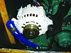 PRØVE: Prøvemontering av dynamoen. Legg merke til den solide strammearmen som er brukt i stedet for standard-armen fra Volvo.