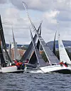 Blant doublehanderne som skal runde Hollænderbåen ligger «Framtia», en XP 44 med Kjetil Tørseth godt an, men han har flere konkurrenter i nærheten.