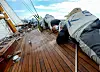 TRÅKK: Mahogni-detaljene er elegante, men ikke særlig egnet for regattaseiling. Ved transportseiling blir de dekket til med canvas.