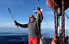 FISKELYKKE: Jon Amtrup i lykkerus etter at en skrei har blitt trukket opp fra 100 meters dyp i Lofoten i mars.
