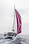 SEIL: Katamaraner trenger mye duk i lett vind. Seil på rulle gjør det mulig håndtere seilene fra cockpit.
