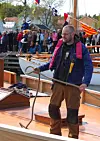 Før den gamle slipptrallen begynte å trille sakte og forsiktig ned mot vannet, var det mange taler og gratulasjoner fra ulike hold. Erik Berg, styreleder i stiftelsen Mohawk og prosjektleder for gjennoppbyggingen på Isegran, takket verftet for en imponerende jobb. Og Fredrikstads ordfører takket for at Sjøkorpset valgte Isegran maritime kultursenter til å reparere skuta.