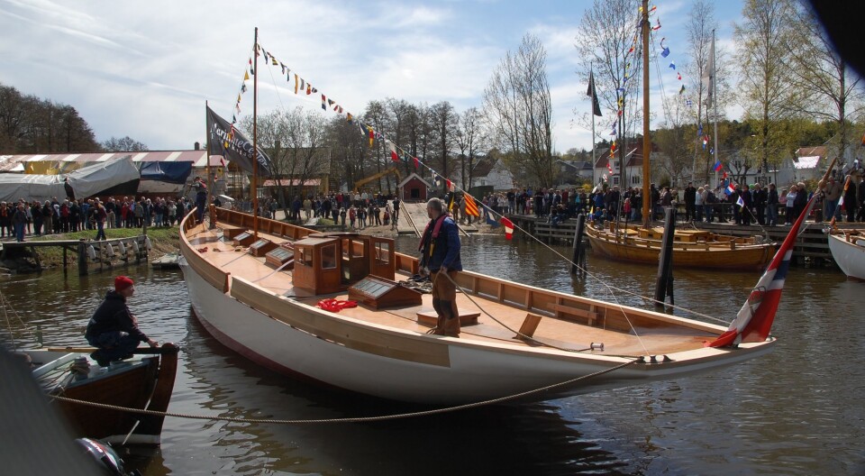 Det var rene 17. maistemningen på Isegran i Fredrikstad da sjøspeidernes gamle flaggskip, «Mohawk», nå totalrestaurert, ble sjøsatt lørdag 8. mai seks år etter at båten ble rent i senk utenfor Nederland.
