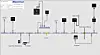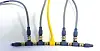 NMEA 2000: Slik kan et N2K-nettverk teoretisk se ut. Den gule koblingen i midten er strømtilførselen, og i endene sitter det motstandsstykker. Det kan kobles inntil 50 enheter på «hovedgaten» - som gjerne kalles «backbone».