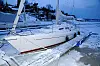 Testen ble planlagt for flere måneder siden. Ikke viste vi da at det skulle bli den kaldeste november i manns minne. For noen få dager siden la det seg tynn is rundt båten. Når vi gikk om bord fredag kveld var isen så tykk at vi kunne gå på den rundt båten. Sist uke var det minus 21 grader på Orust.