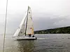 Trioen jibber seg nedover fjorden mot Son, mens Kongen passerte som første enskrogsbåt 14.54 , bokstavelig talt som ensom majestet.