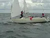 Nå har de mindre båtene nådd Hollænderbåen, og runder i fin bris fra sørvest.