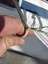 ENDEN: Klemmestykkene og skiven monteres slik at enden på vaieren stikker om lag 5 mm utenfor skiven.