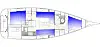 Akterlugaren er trukket noe frem. Det gir en bredere køye, og køya kan legges lavere, som gir mer volum over køya. Byssa er plassert der den tidligere modellen hadde badet.