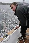 I reklamen sier Rassy at den nye 37-foteren er en rask og velseilende båt som går mykt og behagelig i sjøen. Hva er da bedre enn å teste båten en vinterdag i kuling og strømsjø?