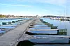 De ytterste bryggene har blitt tømt for båter, før de gamle bryggene og utriggerne demonteres og transporteres bort.
