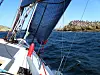 - Vi hadde en forsiktig start og følte oss frem litt under broen. På kryssen utover mot Åstol holdt vi godt følge med de andre. Vi var de eneste i vår klasse som gikk gjennom de trange passasjene ved Klädesholmen, og det tjente vi stort på. Derfra hadde vi veldig fin flyt på fokkesløren nordover gjennom Kyrkesund og seilte fra mange båter som normalt skal slå oss. Vi trives godt i mye vind. Dette var veldig bra!