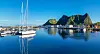 Under regattaen hadde vi hatt forsterkninger av mannskapet, men nå fortsatte vi alene mot Myken. Et spennende øysamfunn langt til havs med ni fastboende, egen gourmet­restaurant og eget whisky-destilleri. Vi hadde heldigvis ringt og bestilt bord dagen i forveien. Vi fikk servert en flott 3-retters middag av Kerstin Marthinsen og Jan Hellstrøm (bror av TV-kjendisen), deretter var det omvisning og prøvesmaking i destilleriet.