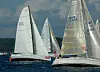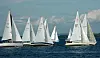 Vinden er nok opp i 8 m/s på det friskeste. Det er varmt og kveldsol. Så langt er det kun en Bavaria som har valgt å reve seilduken.