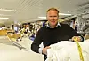 SVEISES: Odd Snellingen hos Norena foran maskinen som smelter sammen plastdukene til en skreddersydd presenning.