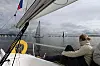 Vi ser at strømmen går utover slik det var meldt, men den er svak. Vinden økte på fra syd, og dreide litt mot sydvest som man skulle forvente hvis dette var solgangsbris. Vi velger utsiden av Bastøy i likhet med de aller fleste av tetgruppen. Båtene bak kommer seg etterhvert fri fra Mølen, og flere melder at de tjente på å gå på innsiden. Vi holder følge med «Aslan» utover, og er fornøyde med farten. En diger svart sky over Slagen volder hodebry. Den beveger seg sydøstover, på tvers av vindretningen. Vi merker ikke noe vind fra den enda, men regner med at noe skjer. Vi prøver også å se for oss hvor det eventuelt blir vindstille etter at den har passert.