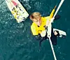 Spektakulære videoer er bra markedsføring. Det viste Alex Thomson med Keel walk og Mast walk på sin Hugo Boss. I Göteborg har Volvo Ocean Race vinneren Abu Dhabi gjort et tilsvarende stunt. Ikke med eget lag, men med kiteren Nick Jacobsen. Han blir heist opp i masten, står på toppen av storseilet, og hopper ut, 30 meter over sjøen. Nick Jacobsen har gjort slike stunt før. Han har tidligere hoppet fra en 40 meter høy kran. Du finner videon her.