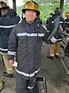 Verftsarbeidere fra Sunnmøre, engelske gruvearbeidere eller brannmenn på øvlse?