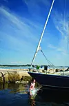 HØY HIMMEL OG 20 GRADER I VANNET: Det er ikke sandstrand eller høye klipper å hoppe fra på Skrata, så Håvard hopper fra båten.