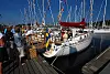 Öppna Varv har utstilling på fire steder rundt omkring på Orust. Najad hadde to av sine splitter nye 355 modell utstilt på Henåen, Allikevel var det en halvtimes kø for å komme om bord for å ta en titt. Og på Henåen hvor Najad, Bavaria og CR-yachts holdt til var det mye færre folk enn på Ellös (store bildet) hvor de fleste nyhetene var samlet. Her stod skoene så tett på brygga a jeg var heldig som fikk beholde dem tørre.