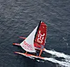 - På dette tidspunktet seilte jeg med tre rev i storseilet og liten stormfokk. Kraften i vindkastet var så stor at sensoren og anti-kulliseiliingslarmen ikke rakk å gå av før jeg befant meg i vannet under nettet som er spent mellom de tre skrogene. Jeg forsøkte å svømme ut i åpent vann midt i natten og kaoset rundt meg. Til slutt kom jeg meg på på en av flottørene. Jeg er ikke sikker på hvordan, men jeg var i stand til klatre opp på skroget og derfra inn i båten gjennom en rømningsluke.