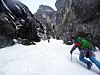 BRATT: Vi er i gang! I starten er kløften mest en bratt gåtur, men vertikal is lurer der fremme og klatretauet må snart opp av sekken.