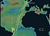 Routingen viser også at et kraftig lavtrykk er på vei i Nord Atlanteren, og det kan gi utfordringer for den 105-fots lange trimaraner.
